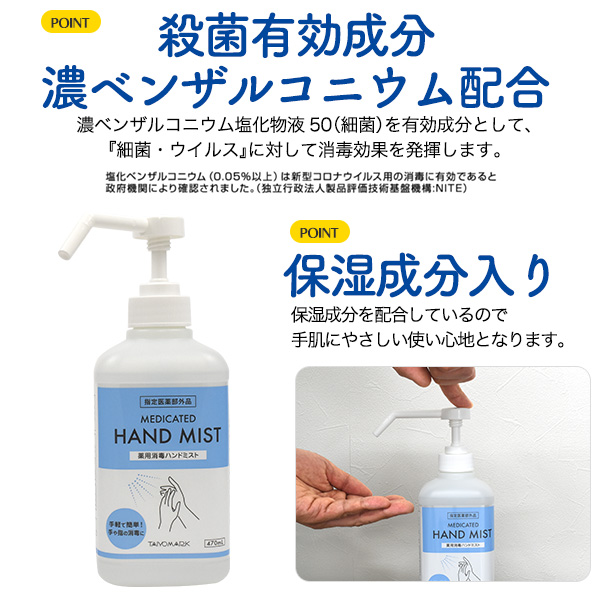 箱売り 薬用 消毒ハンドミスト 470ml×20本セット(カートン販売) 保湿成分入り ポンプ式 指定医薬部外品 殺菌有効成分配合 手指の除菌に 店舗 オフィス 玄関 入口 速乾性 手指 お手軽 まとめ買い 高濃度エタノール 大容量 衛生関連 衛生用品 送料無料