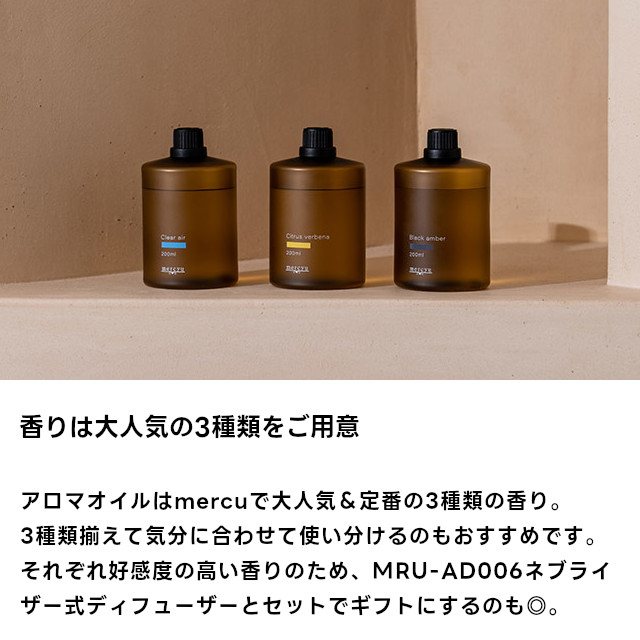 mercyu MRU-AD006用 ネブライザー専用アロマオイル MRU-AD007【メルシーユー アロマオイル ネブライザー ネブライザー式 アロマディフューザー アロマオイルのみ アロマ ディフューザー フレグランス 香り 芳香剤 ギフト 母の日 父の日 敬老の日 クリスマス Xmas】