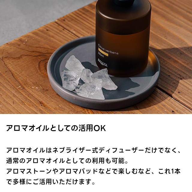 通常のアロマオイルとしても使用可能なため、お手持ちのアロマストーンやアロマパッドなど、あらゆるシーンで気兼ねなくお使いいただけます。