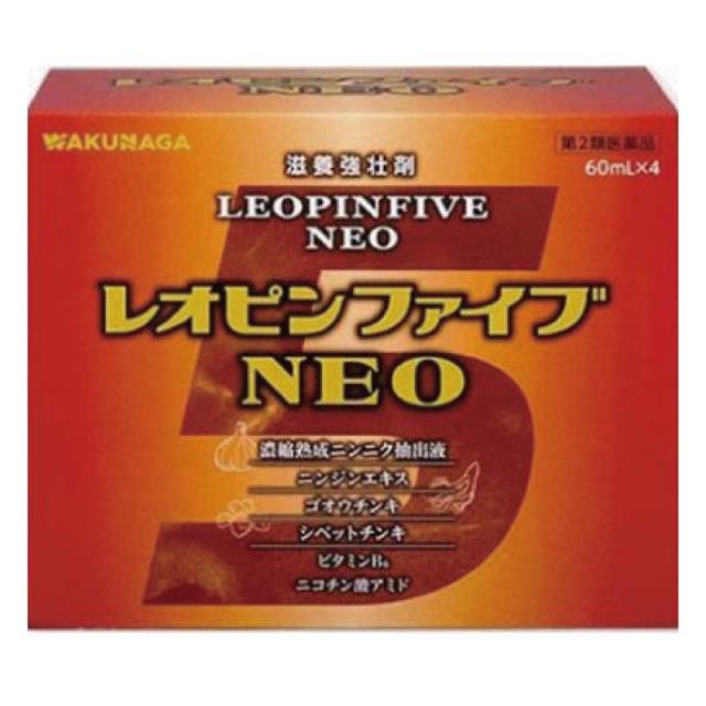 レオピンファイブネオは現代人の食生活にあわせたワンランク上の滋養強壮剤。濃縮熟成ニンニク抽出液の他、疲労に対する効果を高めるための滋養強壮生薬、ニンジン、ゴオウ、シベットと現代人の生活習慣で不足しがちなビタミンB6、ニコチン酸アミドを配合。