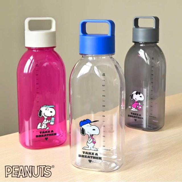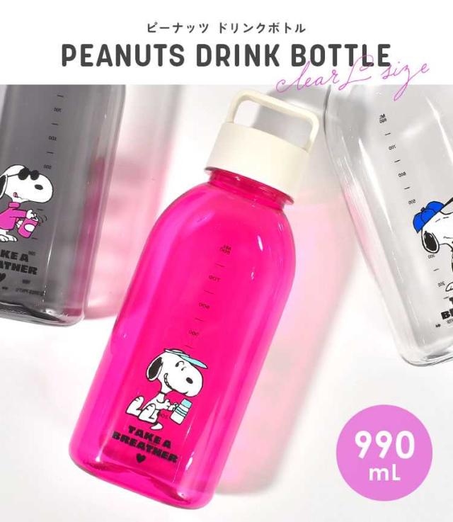 水筒 クリアボトル スヌーピー ドリンクボトル SNOOPY ウォーターボトル 目盛り 1リットル 透明 クリア かわいい おしゃれ キャラクター グッズ PEANUTS 990ml 大容量 軽量 直飲み シンプル 常温 プラスチック ボトル スポーツ ヨガ 運動 アウトドア 大きめ 1L 持ち手付き