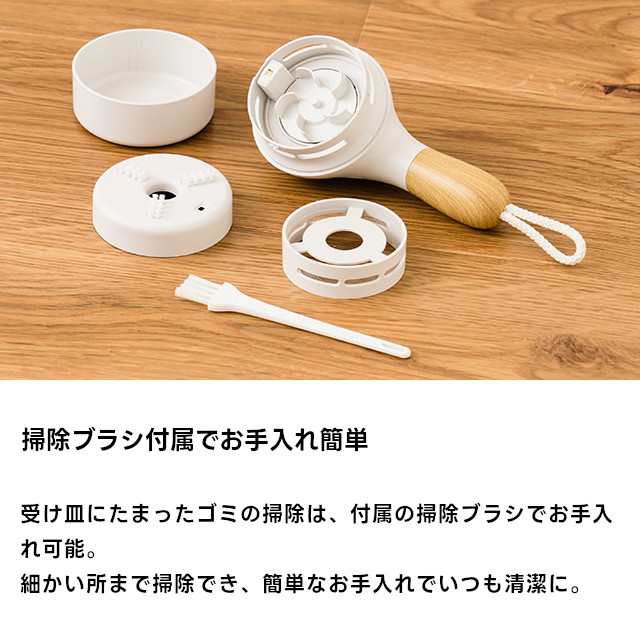 底面のブラシでデスク周りのホコリはもちろん、食卓での食べこぼし、消しゴムの消しカスなど、様々なゴミをしっかり集め吸引します。