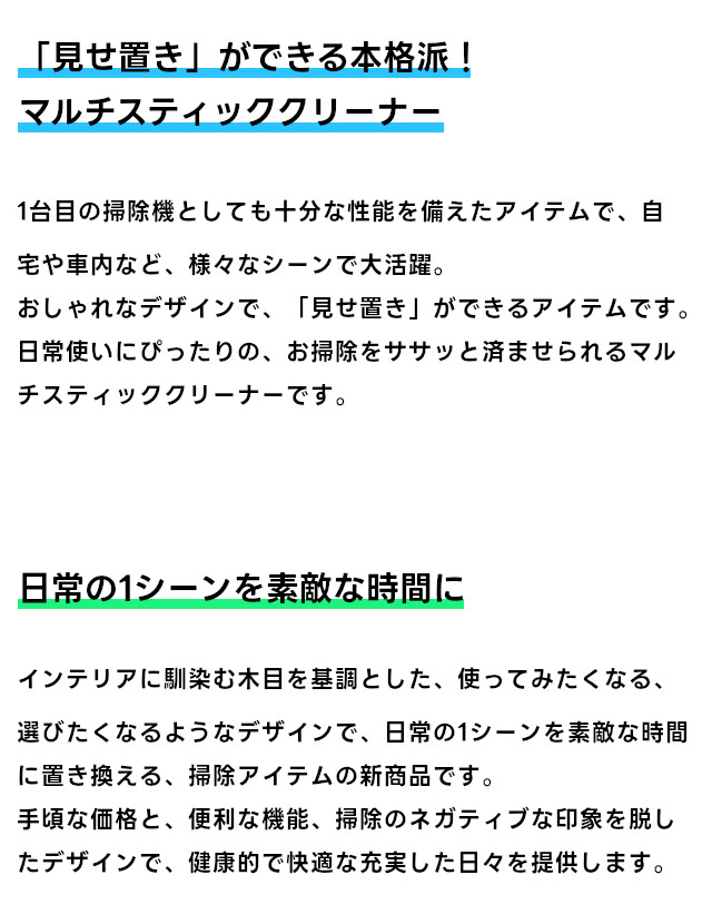 「見せ置き」ができる本格派!マルチスティッククリーナー |
