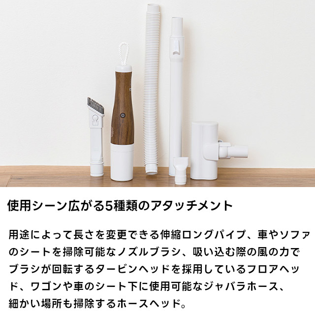 1台目の掃除機としても十分な性能を備えたアイテムで、自宅や車内など、様々なシーンで大活躍。