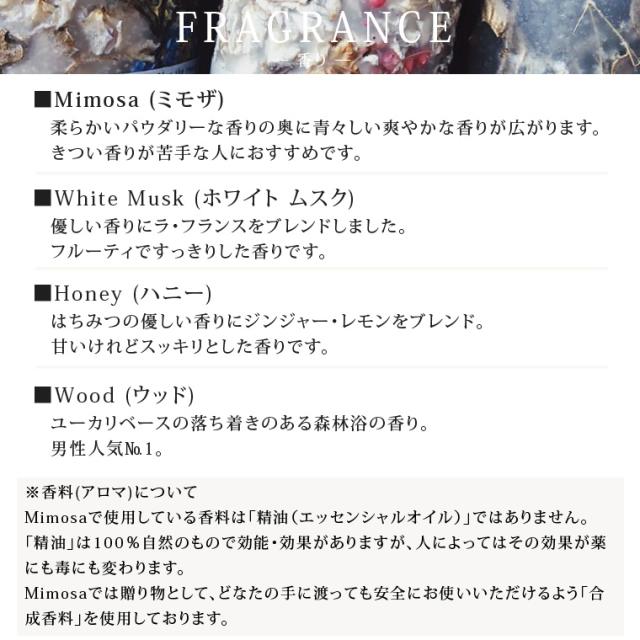 | 香り | ・ミモザ ・ホワイトムスク ・ハニー ・ウッド |