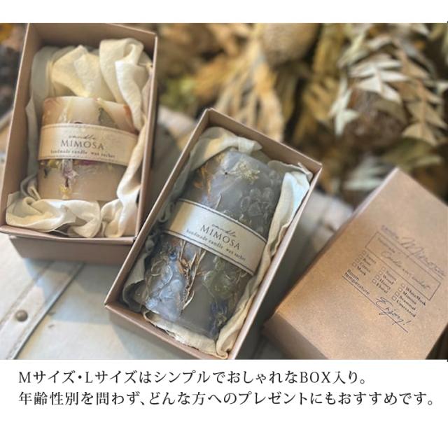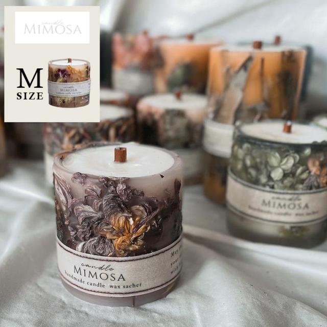 【Mサイズ】キャンドルミモザ ボタニカルアロマキャンドル Mサイズ フラワー キャンドル 香り フレグランス 木 芯 たき火 焚き火 ろうそく 花 天然 ハンドメイド 手作り 1点物 おしゃれ 可愛い 結婚式 ウエディング プレゼント ギフト 贈り物 ラッピング無料 agesugi_sbe