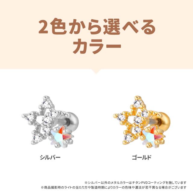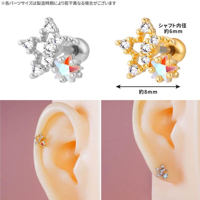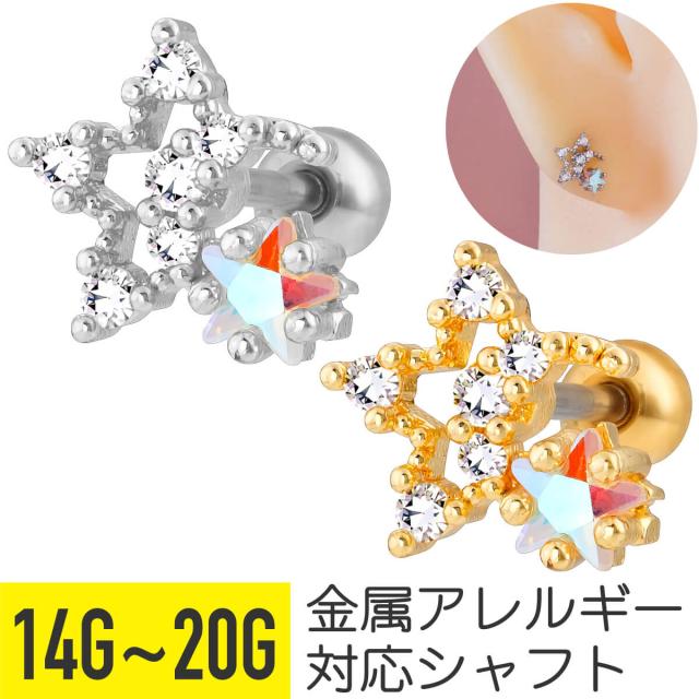 オーロラ スター ジュエル ストレートバーベル 14G 16G 18G 20G サージカルステンレス ジルコニア ヘリックス 軟骨ピアス ボディピアス