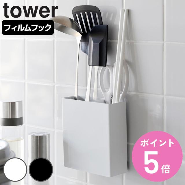tower 山崎実業フィルムフックキッチンツールホルダー タワー ( タワーシリーズ カトラリーポケット キッチンツールホルダー フィルムフック ツールホルダー ツールスタンド 仕切り付き 調理小道具立て tower 山崎実業 キッチン)