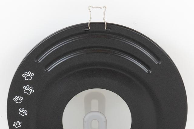 表面にプリントされたネコちゃんの足跡やネコ型のフックが愛らしいです。フックは掛けて収納するのに便利です。