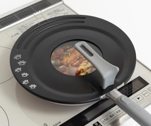 フライパンカバー 18〜22cm ガラス窓付き スタンド式 にゃんこれ ( フライパン 蓋 兼用蓋 鍋蓋 自立 立つ フライパンフタ フライパン蓋 パンカバー ガラス蓋 兼用フタ フライパンのふた かわいい ハンドル付き )