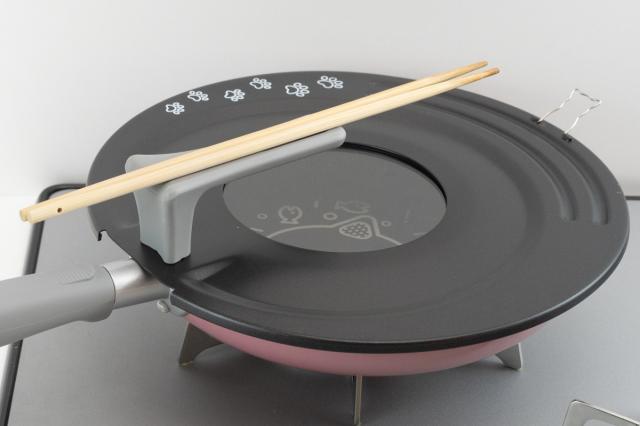 置き場所に困る菜箸などのキッチンツールが置けるハンドルです。菜箸やツールをを置くために、わざわざお皿を出す面倒な手間が省けます。