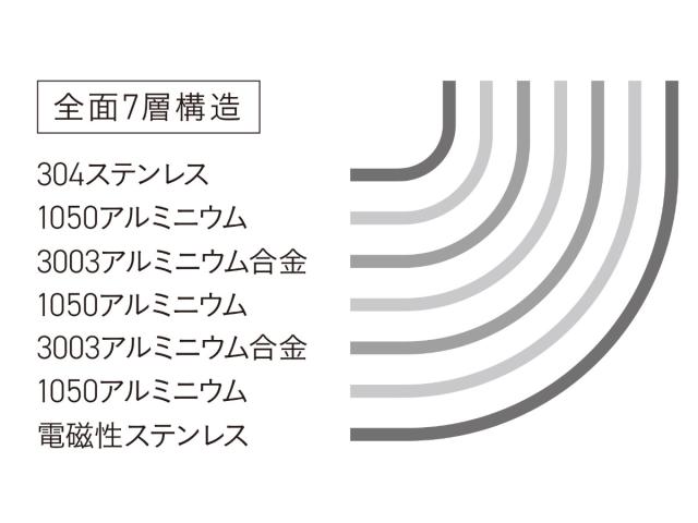 | 材質 | ステンレス鋼、電磁性特殊ステンレス鋼、アルミニウム、アルミニウム合金の全面7層構造 |