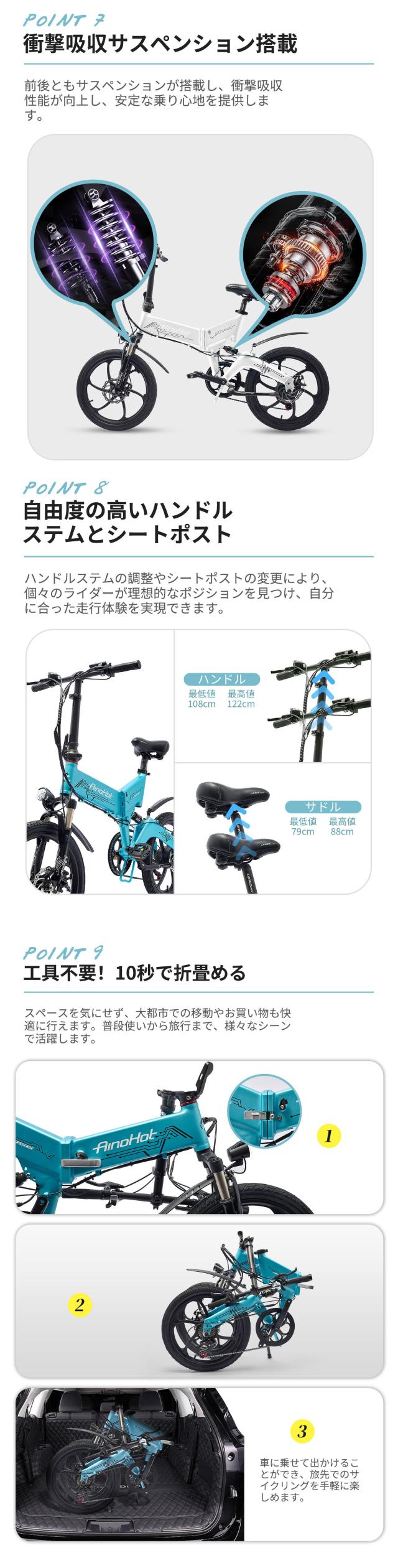 ※最新鋭のテクノロジーを導入した高品質6061アルミニューム合金は、強度と防水を保証。 すべての電子回路を車体内部に設置しました。天候にかかわらず 、あなたの素晴らしいパートナーになります。 通勤・通学などで使用すれば、汗を流すような無駄な体力を使わずに、快適なロングライドが可能となります。