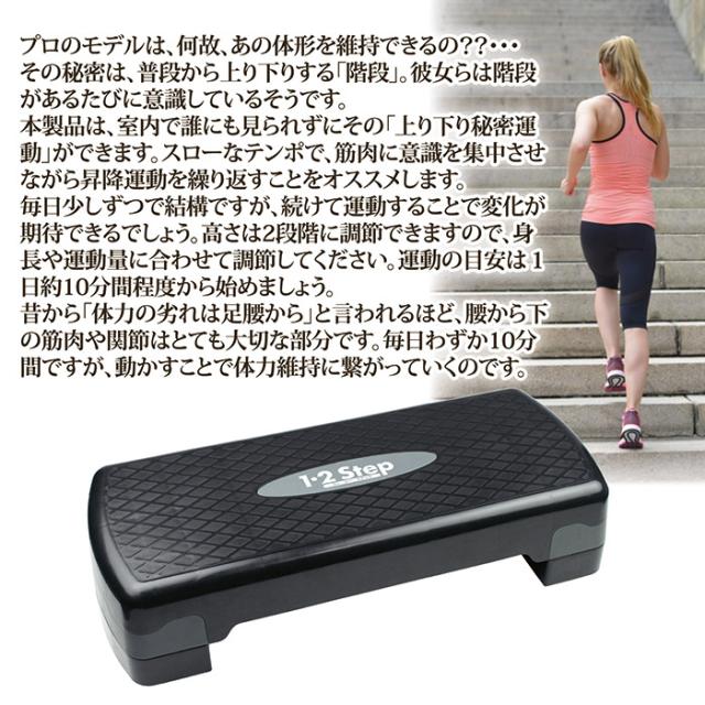 プロのモデルは、何故、あの体形を維持できるの??…その秘密は、普段から上り下りする「階段」。彼女らは階段があるたびに意識しているそうです。本製品は、室内で誰にも見られずにその「上り下り秘密運動」ができます。スローなテンポで、筋肉に意識を集中させながら昇降運動を繰り返すことをオススメします。