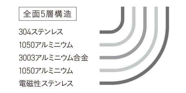 ステンレスとアルミを重ねて「 熱しやすく冷めにくい 」 理想的な熱効率を実現しました。