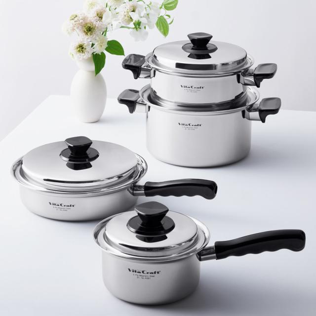 鍋としての理想や品質には一切妥協せず、長年愛されてきたデザインと機能性を継承しているビタクラフト「Vシリーズ」の全面多層鋼鍋です。