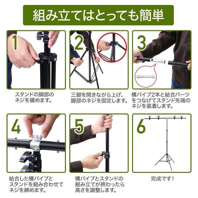 背景スタンド 撮影用 T字型 万能クリップ 4個付き 200cm×150cm 高さ調整可能 収納袋付き グリーンバック スクリーン スタンド 三脚 撮影スタンド 背景スタンド 背景布スタンド