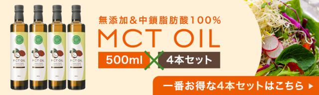 MCTオイルは、ココナッツもしくはアブラヤシの種子から『中鎖脂肪酸』のみを抽出したオイルです。無味無臭であることが多いため、サラダにかけたり、コーヒーに入れたりと色々な使い方ができます。