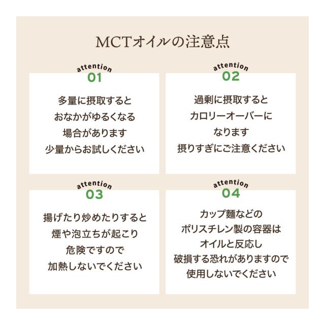 MCTオイルの特徴として、以下の点が挙げられます