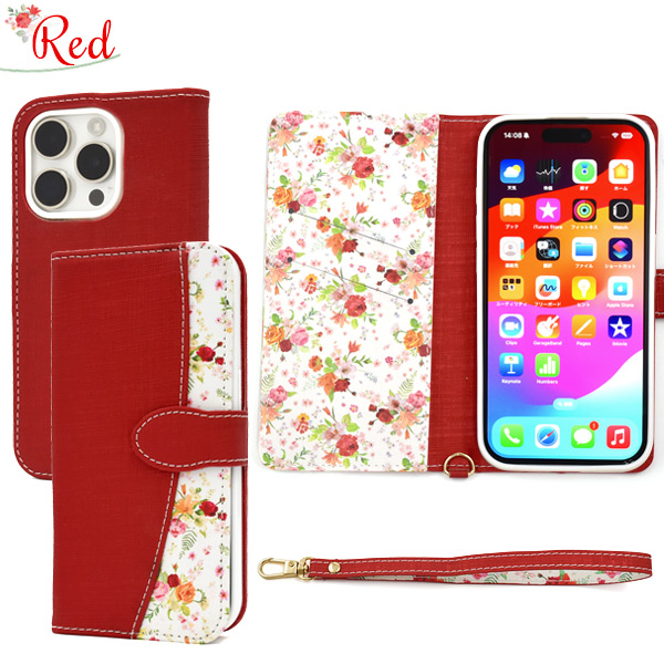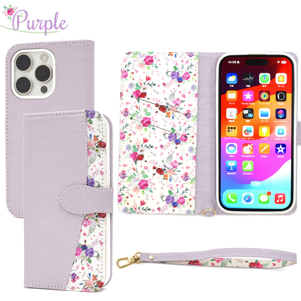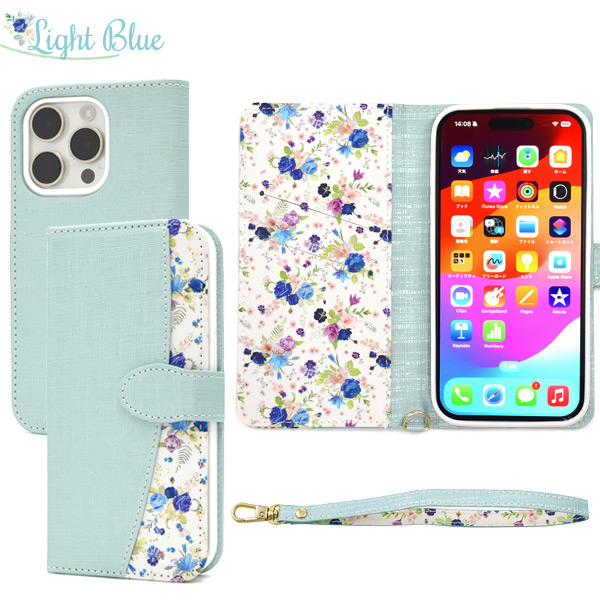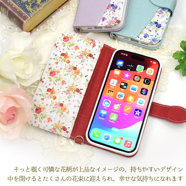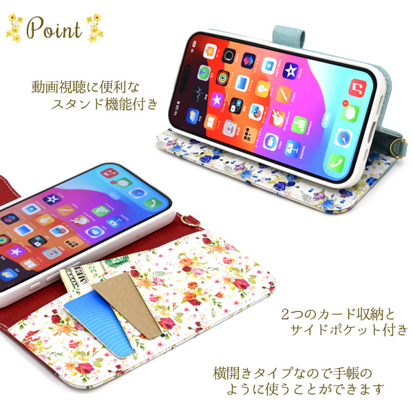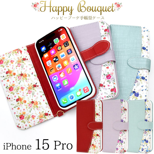 スマホケース iPhone15Pro 手帳型 ハッピーブーケ フラワー お花柄 アイフォン15プロ 保護 カバー 手帳タイプ アイホン スマホカバー アイフォン iPhone 15Pro アイフォン15Pro カード入れ 定期入れ ポケット付き 女性 レディース