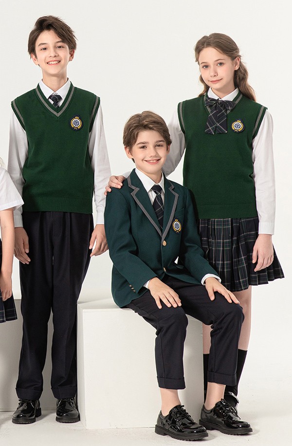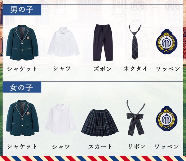 5点セット(女の子):シャケット|シャツ|スカート|リボン|ワッペン ベスト:別途料金3980円