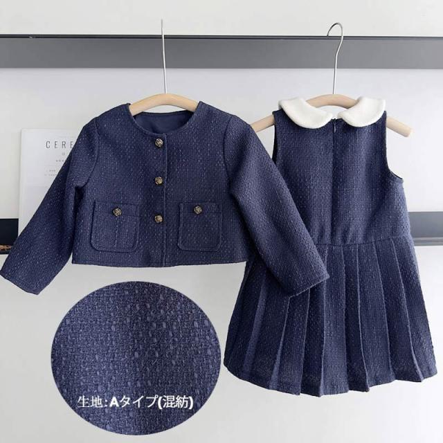 入学式 スーツ 女の子 女児 卒園式 子供服 スーツ女の子 ワンピース 卒園90 100 110 120 130 140cm 2点セット ボレロ ワンピース [キッズ フォーマル 子供スーツ アンサンブル ネイビー 結婚式 七五三 発表会 アンジェル ]