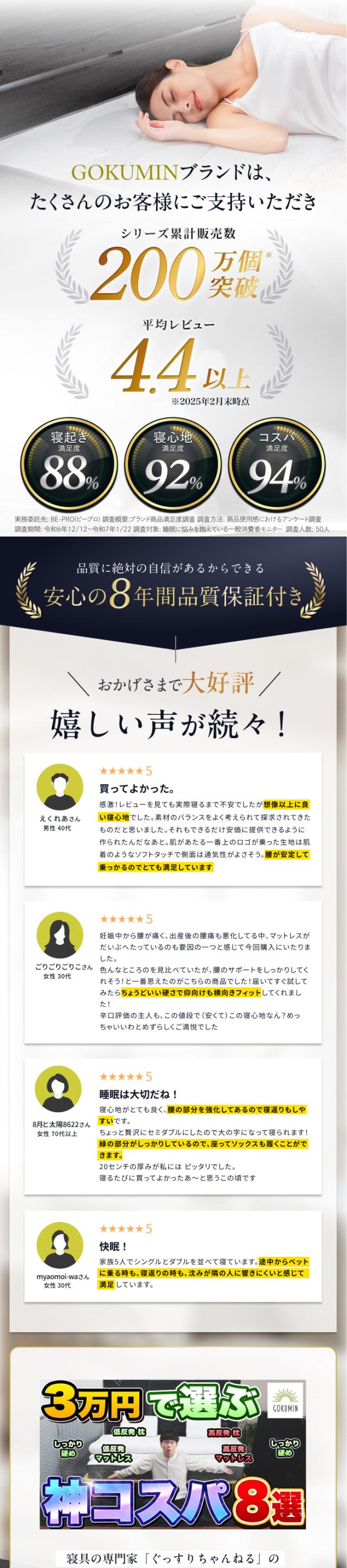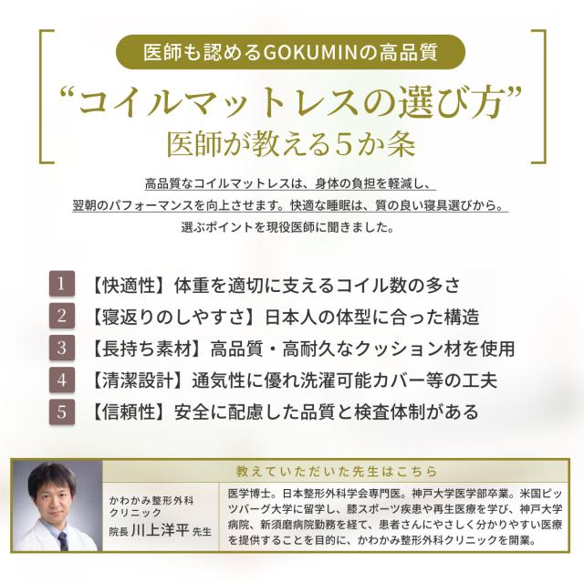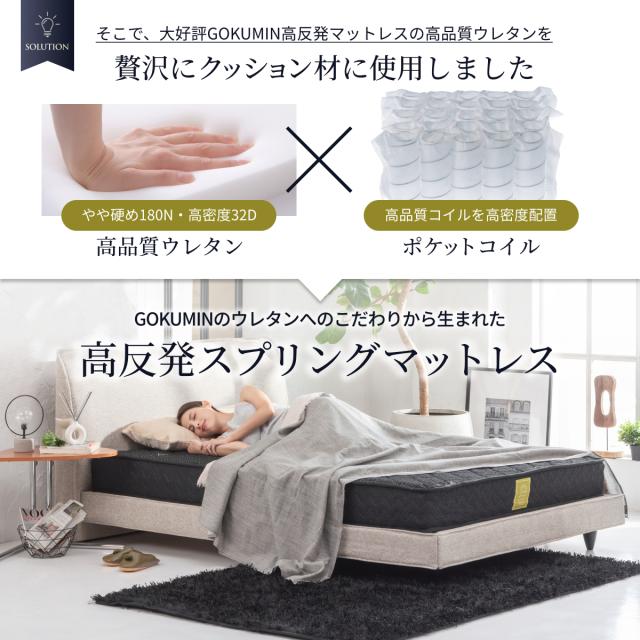 【朝、腰が軽い目覚め】マットレス シングル GOKUMIN プレミアム高反発マットレス / 496個の独立コイルが体圧を分散、腰の負担を軽減 / 信頼の日本企業企画・安心の8年保証 高反発 硬め 腰痛対策 肩こり 快眠 体圧分散 ベッドマットレス 通気性 圧縮梱包