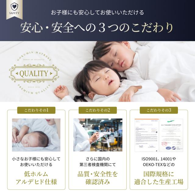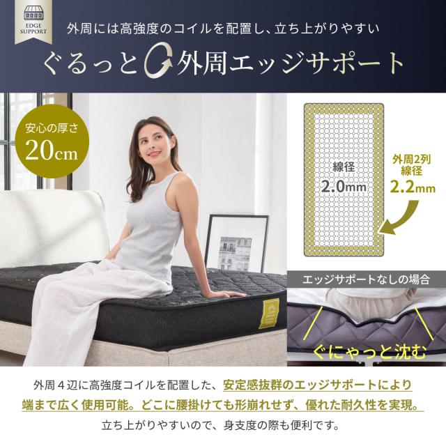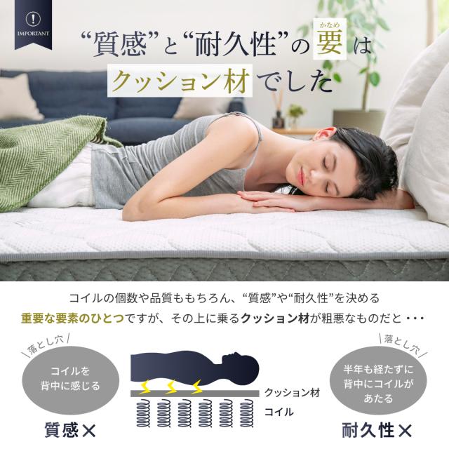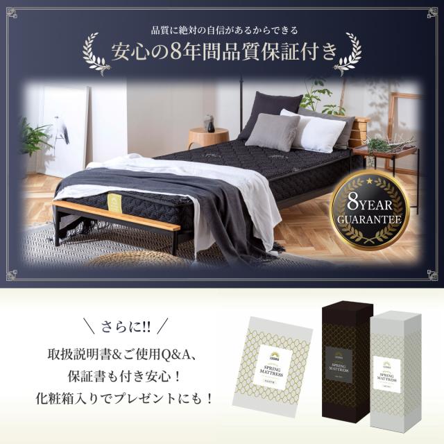 | 素材 | ○材質:スプリング SWRH-70B-C種 、高反発ウレタンフォーム(密度32D、硬さ180N) ○表面生地:高級ニット生地(レーヨン30%ポリエステル70%) ○裏面生地:ポリエステル生地 |