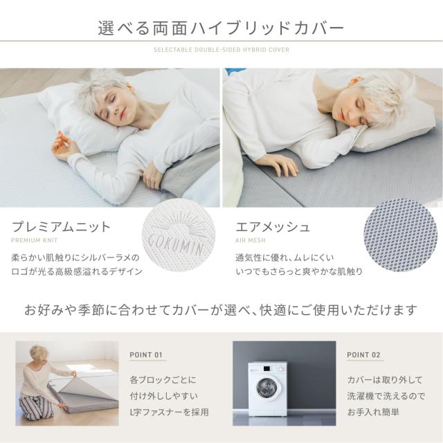 高級ニット生地とメッシュ生地のリバーシブル仕様で、カバーは取り外して洗濯可能です。