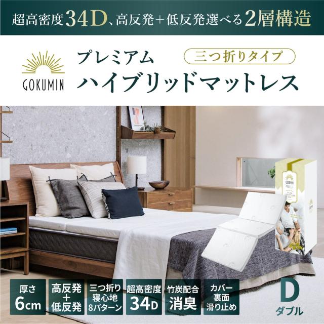マットレス ダブル 三つ折り 高反発 低反発 敷布団 腰痛対策 収納 GOKUMIN 高品質34D 硬め180N
