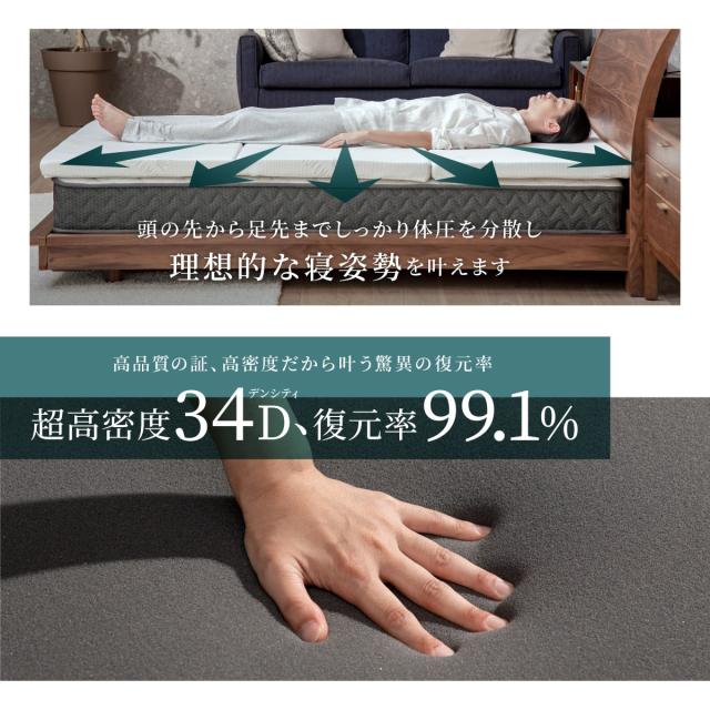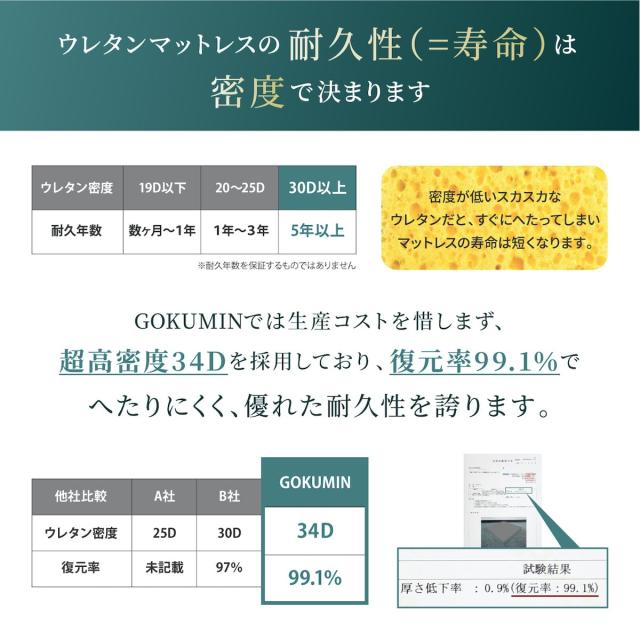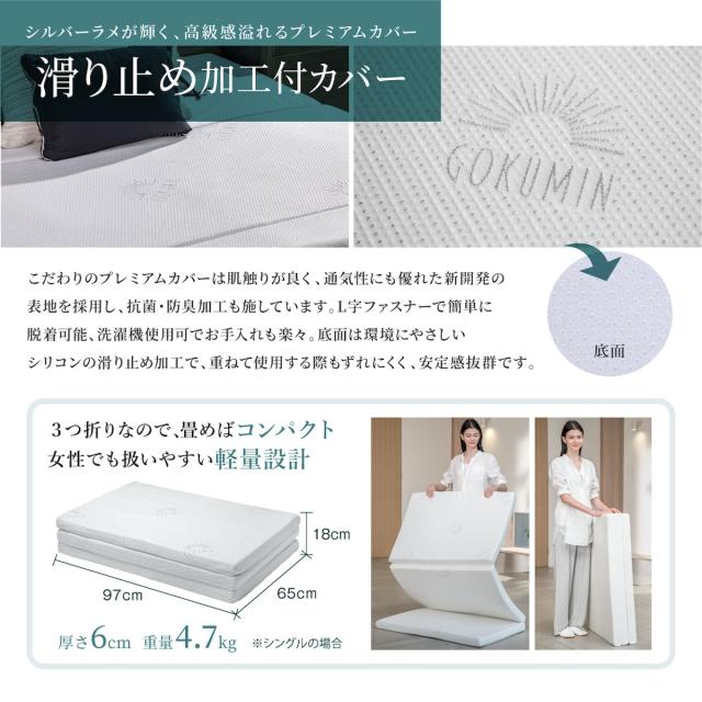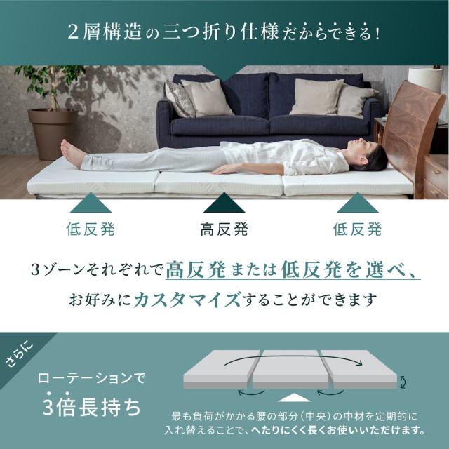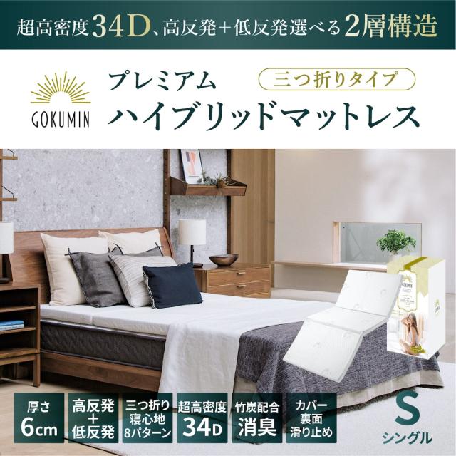 マットレス シングル(幅97×縦195×厚さ6cm) 三つ折り 高反発 低反発 敷布団 腰痛対策 収納 GOKUMIN 高品質34D 硬め180N