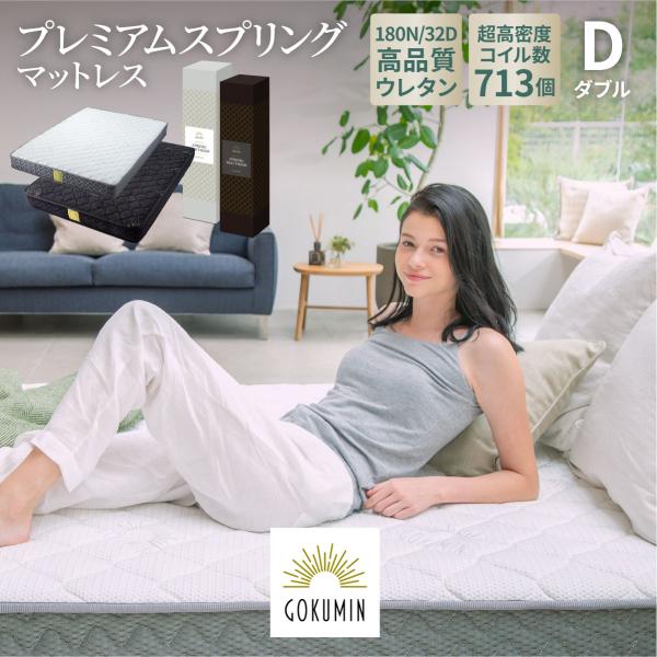 【朝、腰が軽い目覚め】マットレス ダブル GOKUMIN プレミアム高反発マットレス / 713個の独立コイルが体圧を分散、腰の負担を軽減 / 信頼の日本企業企画・安心の8年保証 高反発 硬め 腰痛対策 肩こり 快眠 体圧分散 ベッドマットレス 通気性 圧縮梱包