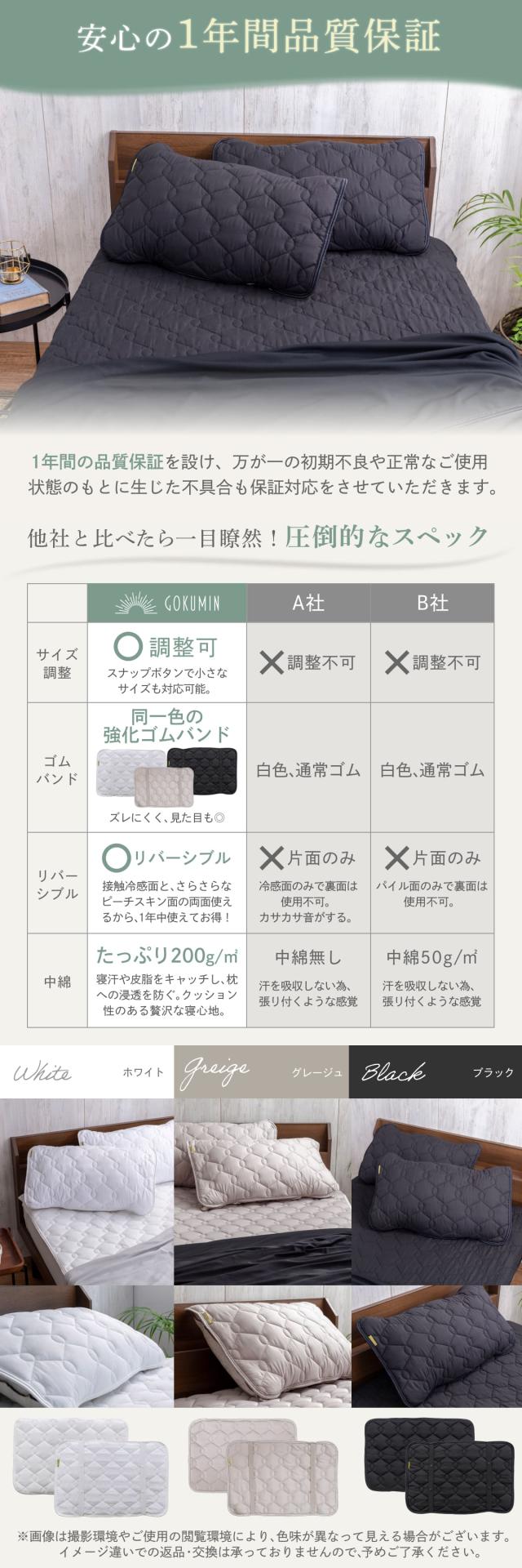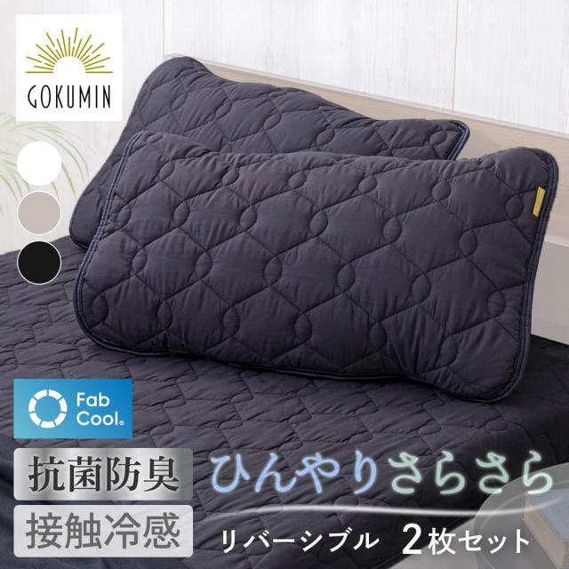 枕パッド 43×63 35×50 接触冷感 2枚セット GOKUMIN ごくみん オールシーズンリバーシブル 吸水速乾 ブラック ホワイト 洗える