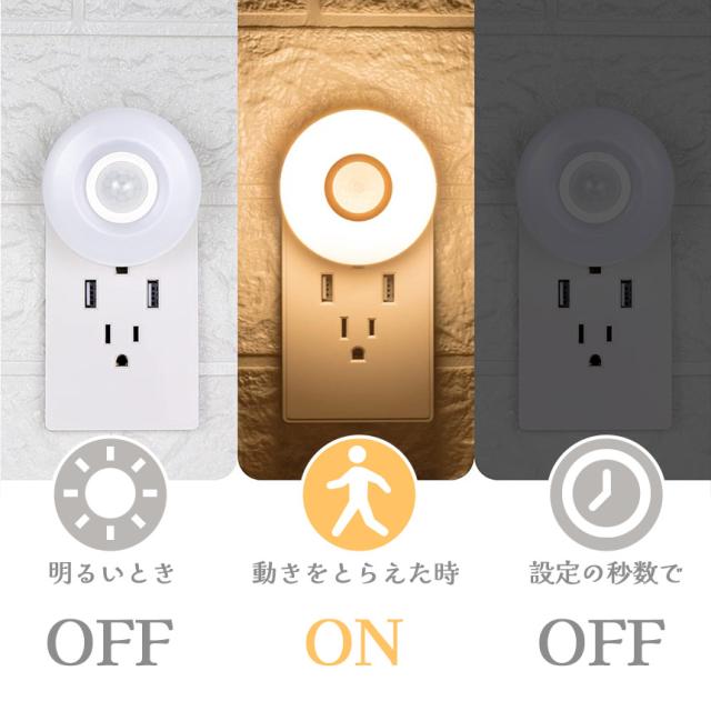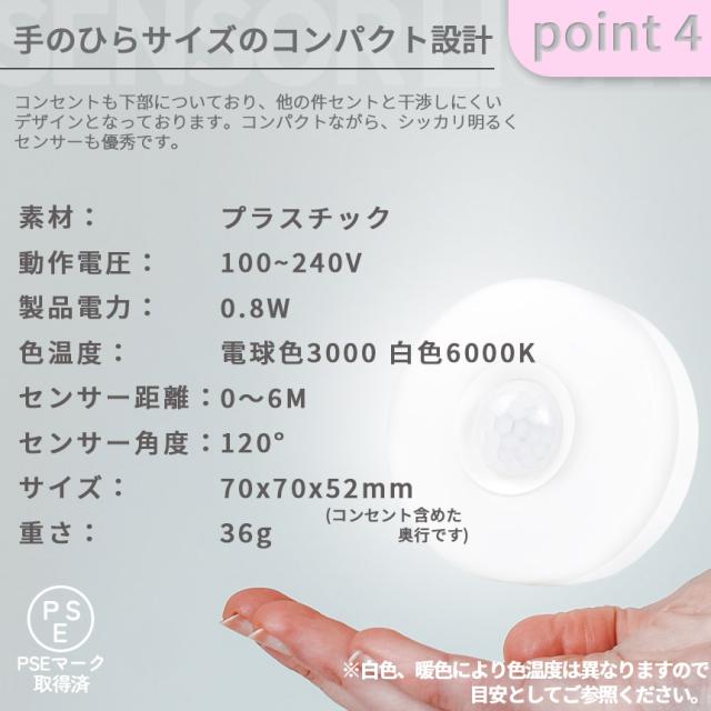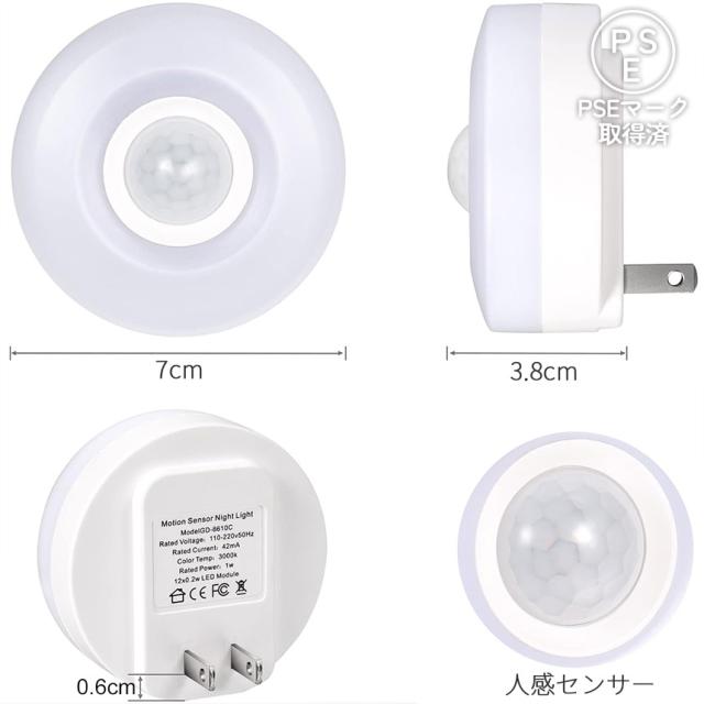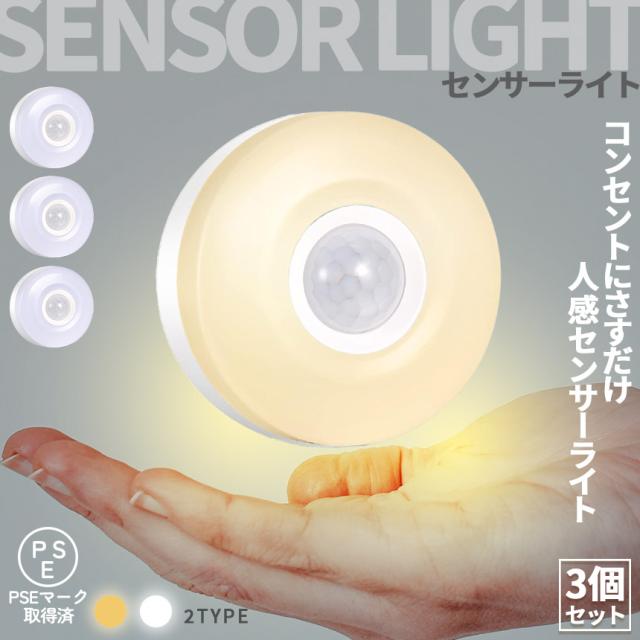 センサーライト フットライト 3個セット 人感 コンセント式 室内 足元灯 省エネ フットライト 電球色 暖色 白色 照明 モーションセンサー 人感センサー 暗闇センサー コンパクト 寝室 玄関 子供部屋 リビング PSE取得済