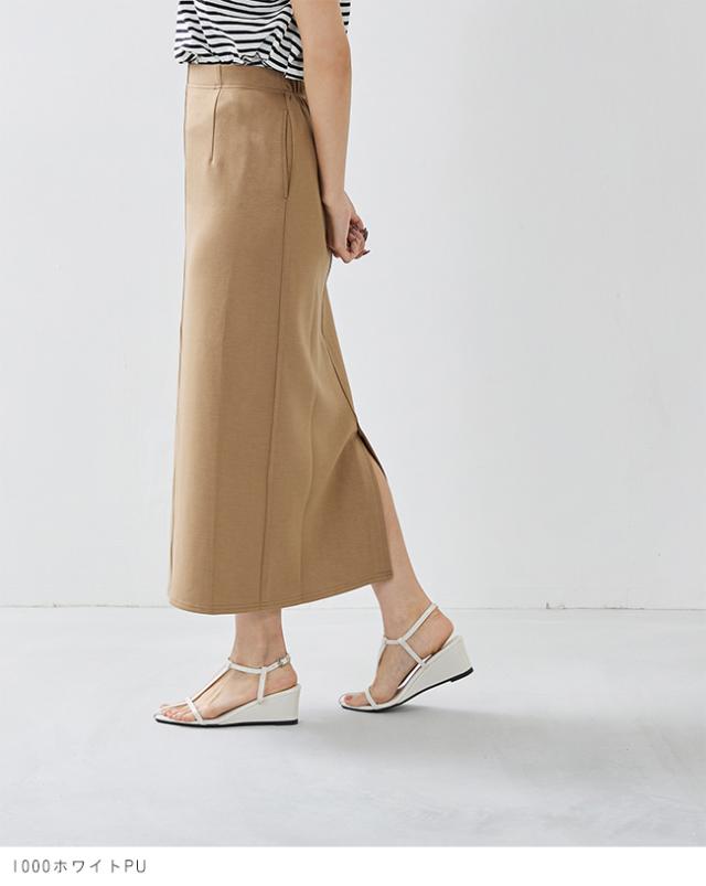 アッパー(外側の生地)と同素材を使ったウェッジヒールは艶感もあり高見えの旬デザイン!