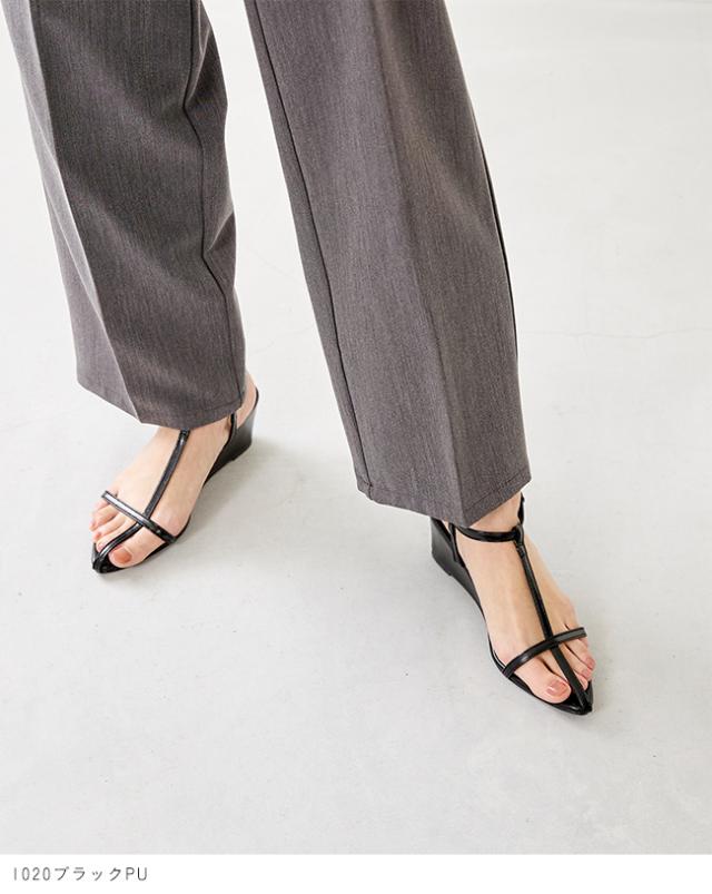 サンダル レディース ストラップサンダル ウェッジソール Tストラップ 痛くない ポインテッドトゥ 華奢 アンクル 送料無料