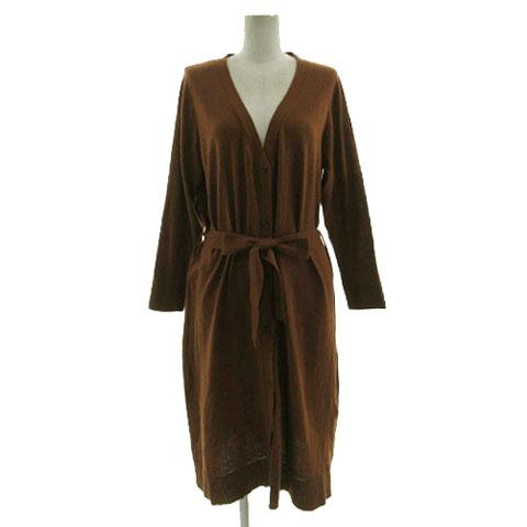 【中古】KBF+ アーバンリサーチ カーディガン ニット トッパーカーディガン ロング丈 リボンベルト ウール混 茶 One