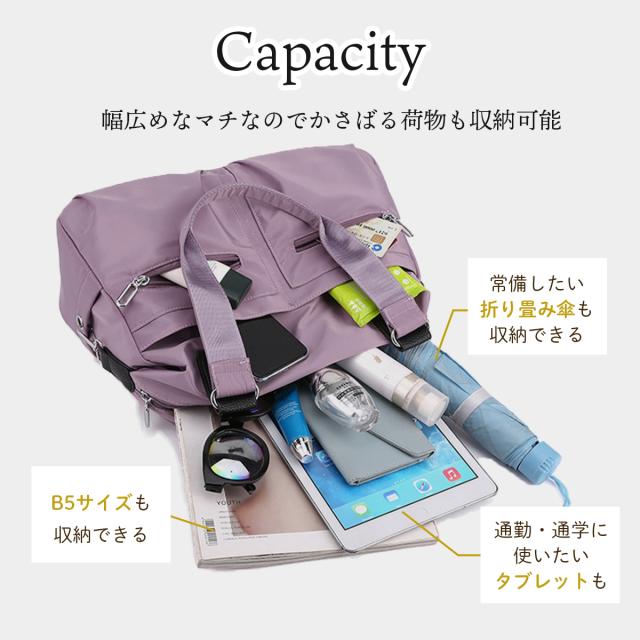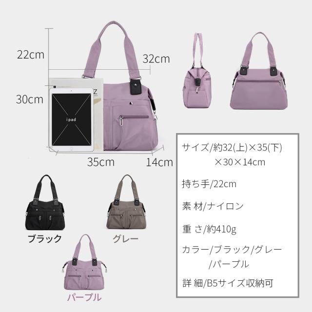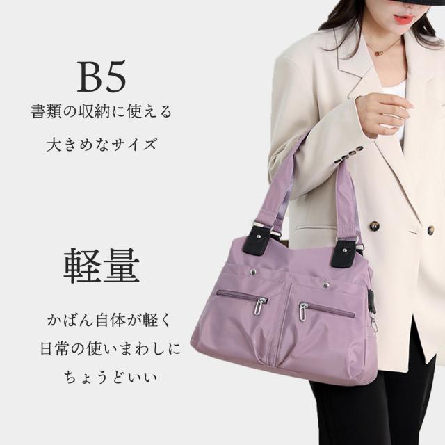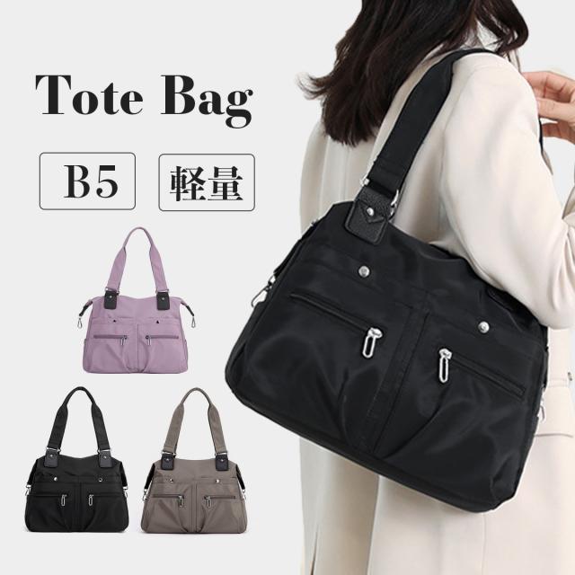 - 似たような別のバッグを買ってみたら使い勝手がよかったので、今度はこちらを買ってみました。B5収納可と表記ありますが、別タイプのA4収納可のバッグと同じくらいの大きさでした。サイドポケットが多く小物が収納できてこちらも使いやすいです。