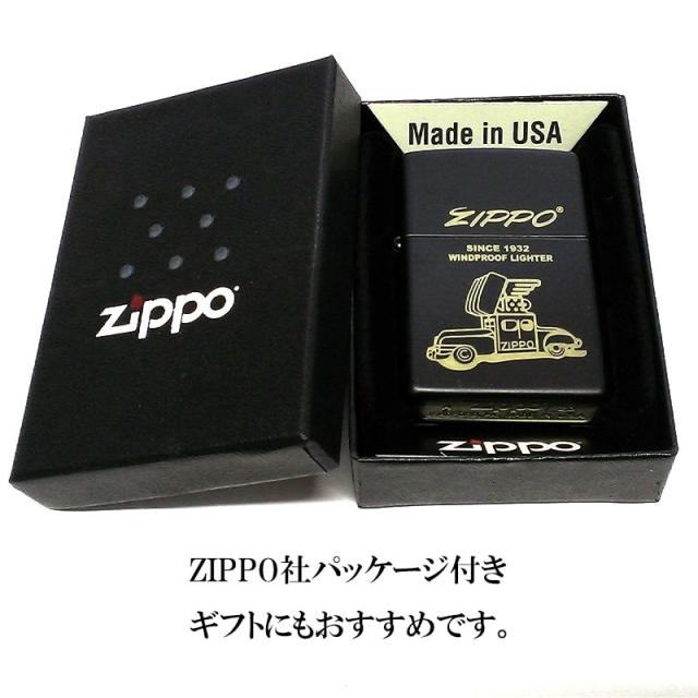 ZIPPO ライター ジッポカー ジッポ マットブラック Zippo Car 車 黒金 定番 プリント 艶消し黒 かっこいい ロゴ レディース メンズ