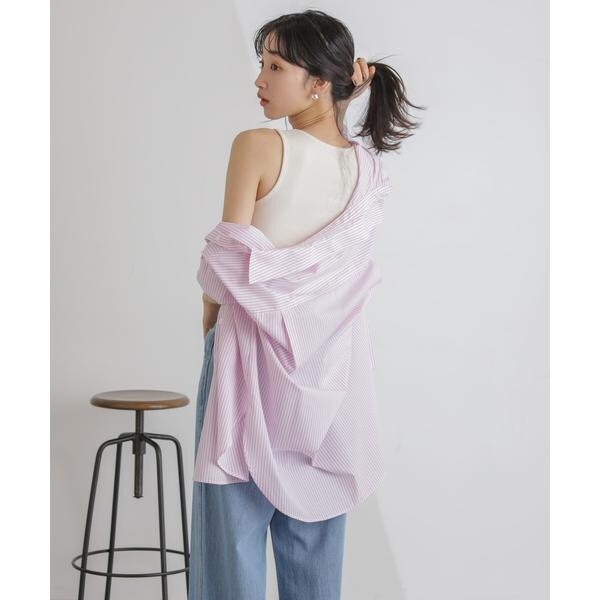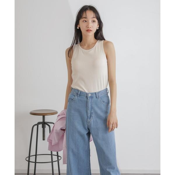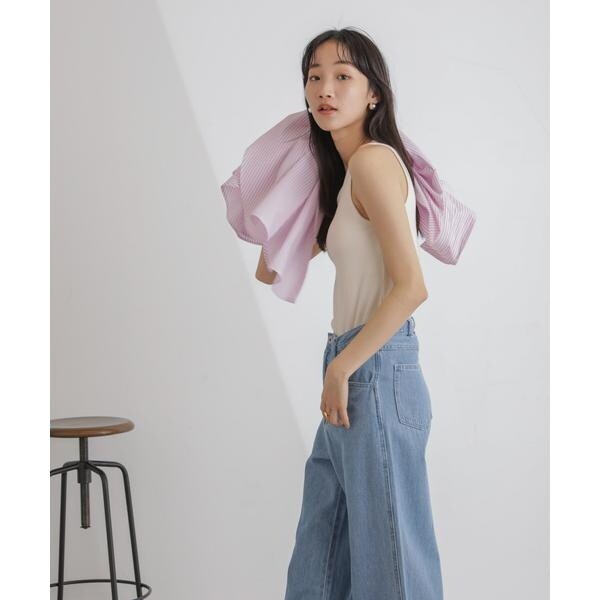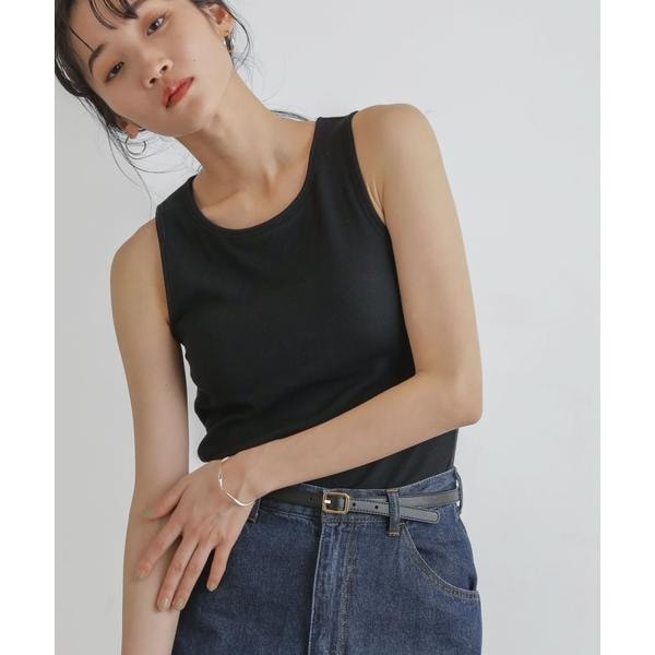 レイヤードスタイルに欠かせない、カップ付きアメスリタンク。パッド部分はぐるりゴムを入れた安定感のある着心地で、1枚でも、シャツやジャケットのインナーとしても重宝。広めに開いたカーディガンやニット等と合わせてもバランスが良く、デイリーの着回しに活躍します。