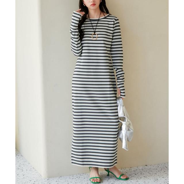 【STAYC/ISA着用】ジャガードマルチボーダーカットワンピース【洗える】