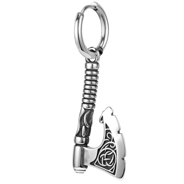 バイキングや戦士の斧をチャームにしたステンレス製リングピアス。