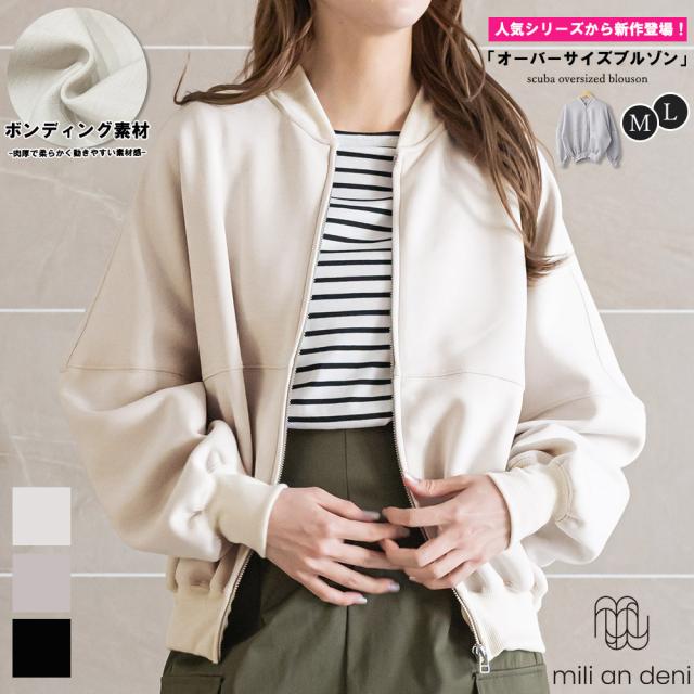 春新作 スクーバオーバーサイズブルゾン厚手 無地 ボンディング M L レディース アウター 春夏ミリアンデニ メール便 a92214