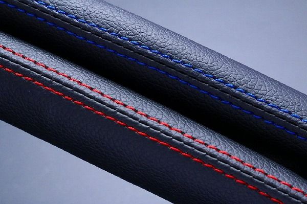 純正のシフトブーツの交換タイプになります。純正と交換するだけで簡単にインテリアの ドレスアップができます。 ステッチカラーは、ブルーとレッドを設定しています。素材は、PVCになります。