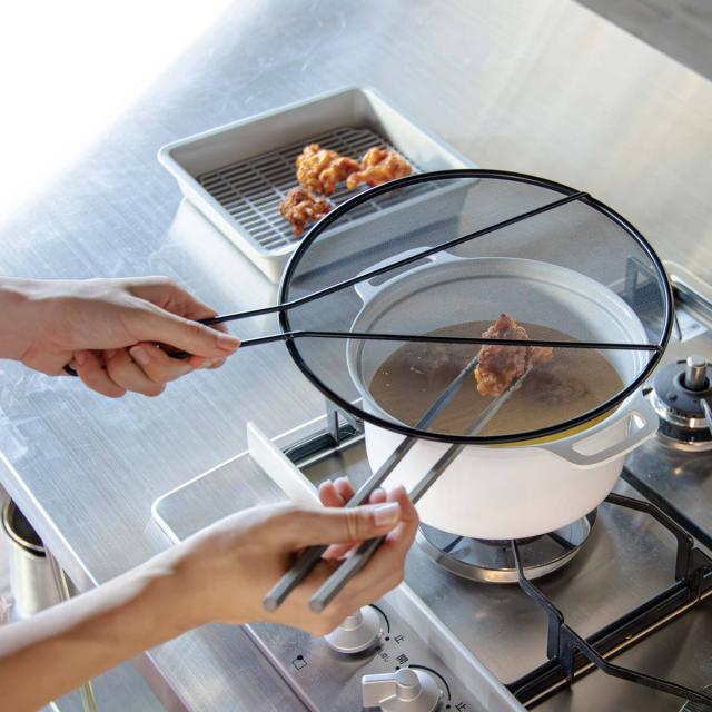 油はねガードは揚げ物調理以外に、煮物の飛び散りを防いでくれたり、揚げ物の一時置き、ちょっとした湯切りにもご使用いただけます。