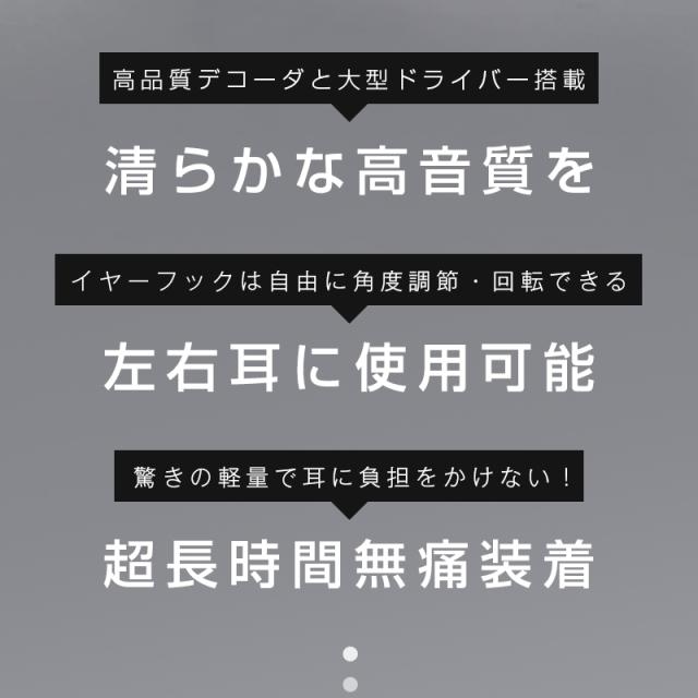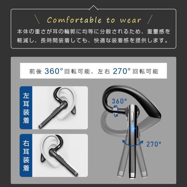 本製品はわずか13gと軽量設計なので、疲れにくいのも魅力です。360°回転可能なイヤーフックと270°回転可能なマイクが本製品の特徴です。人間工学に基づいたイヤーフックは耳の輪郭に従って流線型に設計されることで、耳に快適な装着感を提供しています。