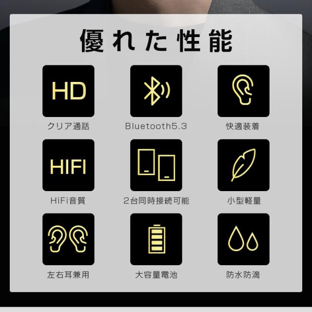 ワイヤレスイヤホン Bluetooth5.3+EDR 片耳タイプ ながら聴き 左右耳兼用 マイク内蔵 ハンズフリー通話 ノイズリダクション クリア通話 【PL保険加入済み製品・安心】