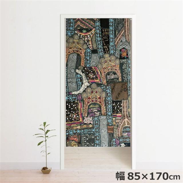 のれん 暖簾 温泉 洗える 目隠し 間仕切り タペストリー オリジナルプリント 転写 約85×170cm エスニック アジアンテイスト アンティーク マルチカラー 170丈 ミラーレース