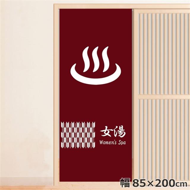 のれん 暖簾 温泉 洗える 目隠し 間仕切り タペストリー オリジナルプリント 転写 女湯 約85×200cm 温泉 ゆのれん 業務用 旅館 温泉マーク レッド 200丈 ロング ミラーレース