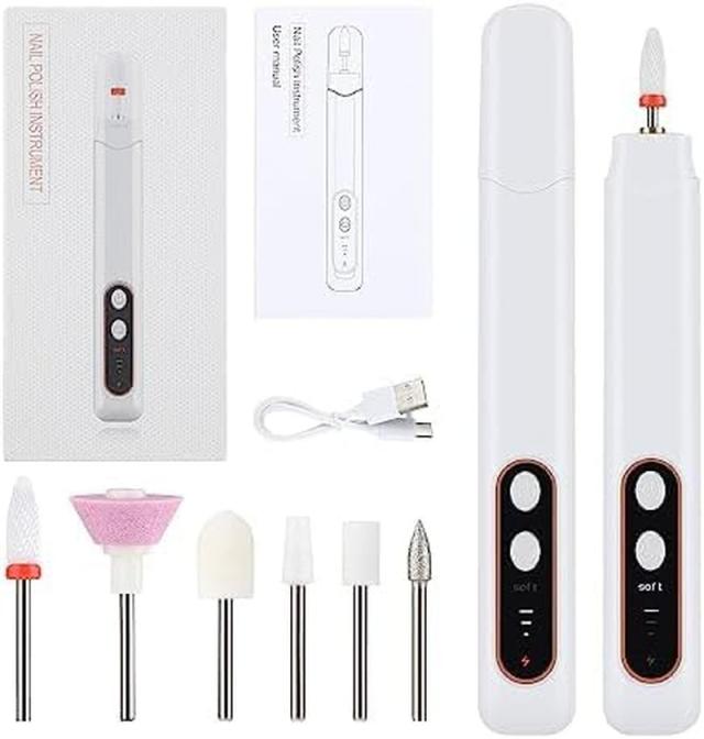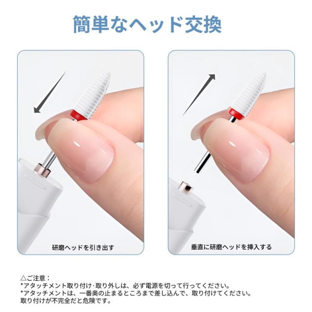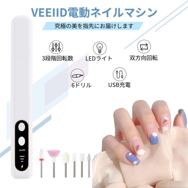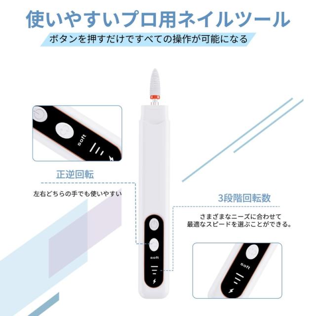 電動ネイルマシンキット 研磨 ネイルマシン 爪磨き プロ アクリル ネイルドリル USB充電式 6個のビット 自宅サロン用